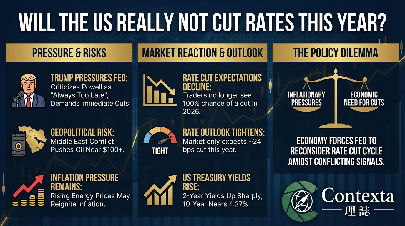 Market expectations for rate cuts have declined, with traders no longer viewing even one cut in 2026 as a certainty.